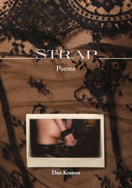 DK: Strap comes from the first poem in the book and, later in the book, too, strap-on. Other meanings, often suggested to me, might be: the leather strap of tefillin, a strap to beat someone or ‘just spank them,’ straps that captively bind or tightly give support. And, as I see it, to leash and unleash.